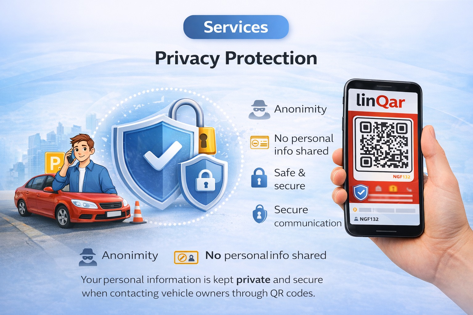 linQar provides smart vehicle tag solutions where your contact details stay private but people can still reach you in case of parking or emergency.