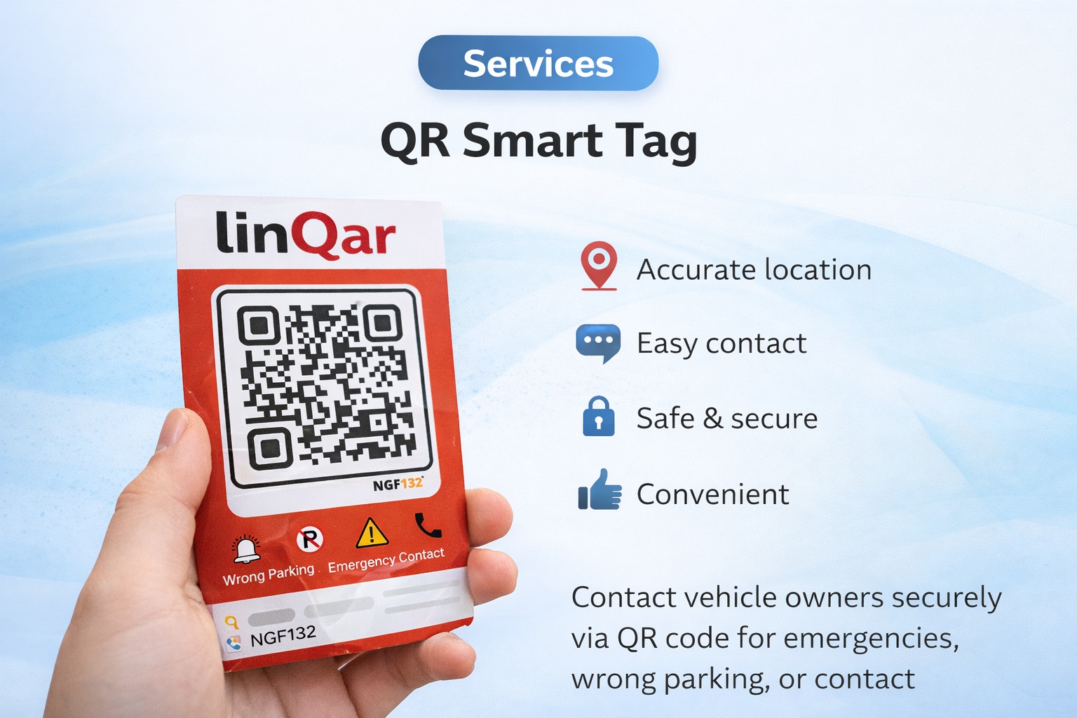 linQar provides smart vehicle tag solutions where your contact details stay private but people can still reach you in case of parking or emergency.